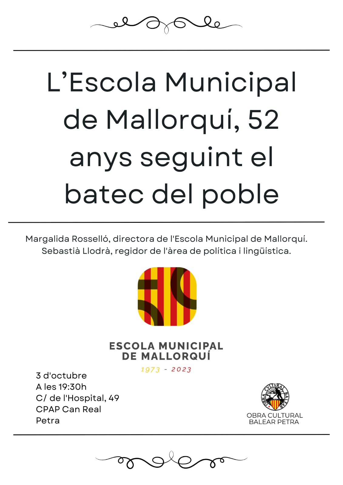 - S'Agrícola: Tomeu Nadal Mesquida, va ser el personatge que va protagonitzar l’acte del «I Cicle Joves amb arrels. Manacorins al món», conduïda per la periodista Emma Calsina
